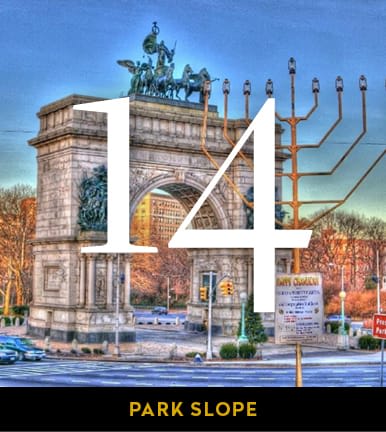 Celebrate Chanukah in Park Slope with a nightly menorah lighting event, complete with live music, latkes, and children’s gifts.