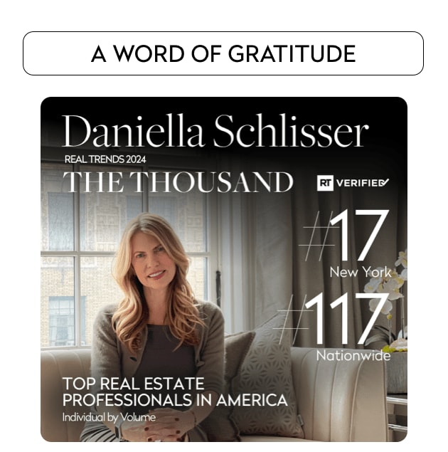 Before I skip to the data, I’d like to take a brief moment to offer my thanks to you, my wonderful friends and clients, for the precious trust you place in me year after year and the joy you bring to my each and every day. I feel so deeply honored to have been ranked #17 in the entire state of New York and #117 across the country for my sales volume as an individual agent in 2023, earning me a spot among Real Trend's THE THOUSAND, a verified ranking of the top real estate professionals in America. It is all of you whom I thank, so very much.