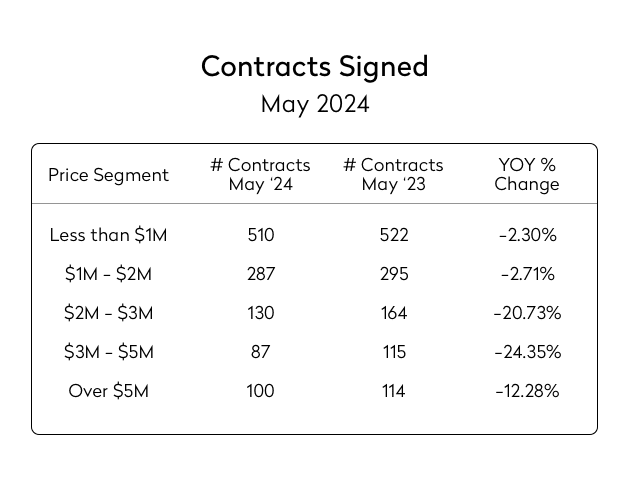 While contract signings for properties asking $5M+ were down about 12% year-over-year by the end of May, we saw a significant number of signed contracts on properties asking over $10M.