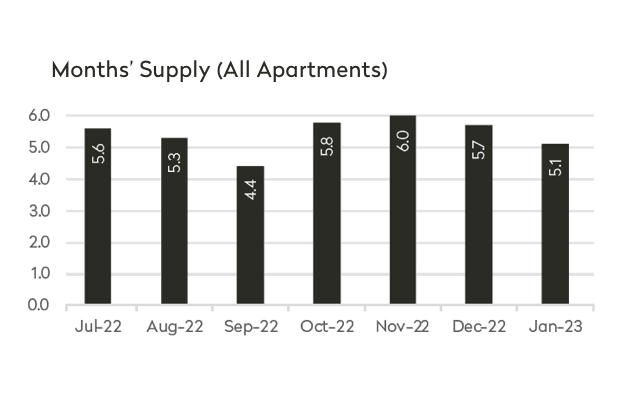 - Supply was lowest on the West Side at 4.0 months, a significant decrease from December when the supply rate was 4.7 months.