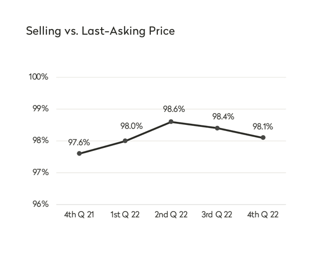 As for activity, there were 35% fewer closings in Q4 2022 at 2,738 compared to 4,242 in Q4 2021 which as mentioned represents the surge in activity that characterized the end of 2021 and start of 2022. While 2023 has started off well with a 13% rise in contract activity between the last week of 2022 and first week of 2023, the same period one year ago was about 40% stronger.