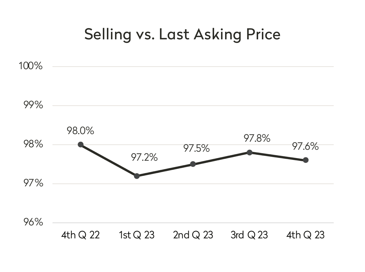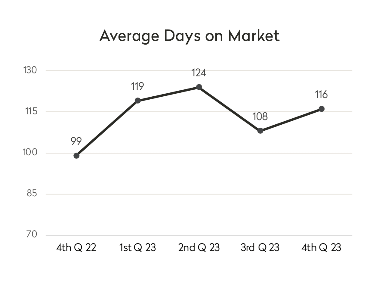 As referenced above, time on market was up significantly to 116 days from 99 days a year ago, representing a 17% increase reflecting the sluggishness we saw in activity throughout the market as 2023 drew to a close.
