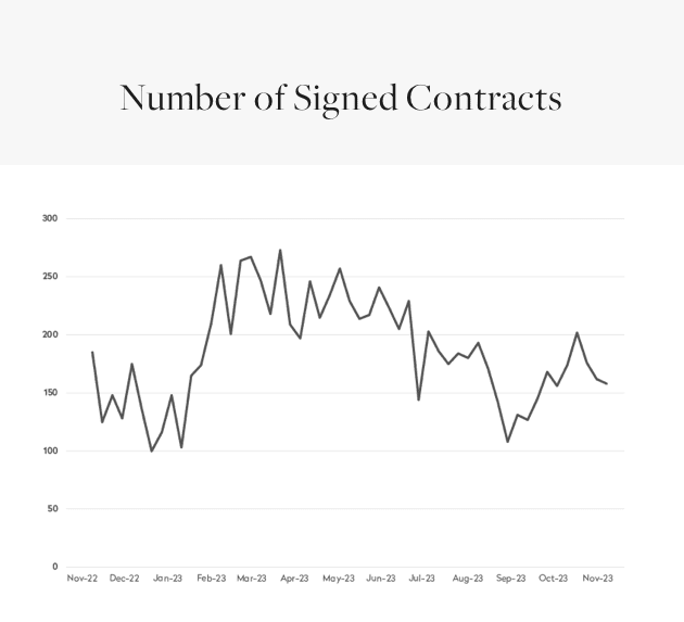 - In the Upper Luxury segment of the market ($4M+), 24 contracts were signed last week, four more than the previous week.