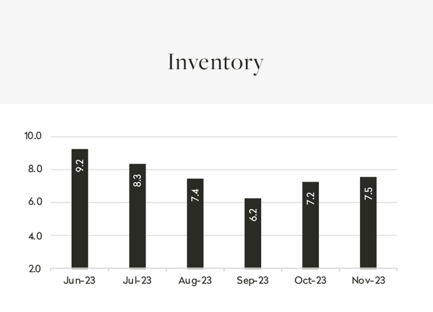- As of November, Manhattan’s supply rose 4% to a month’s supply of 7.5 months.