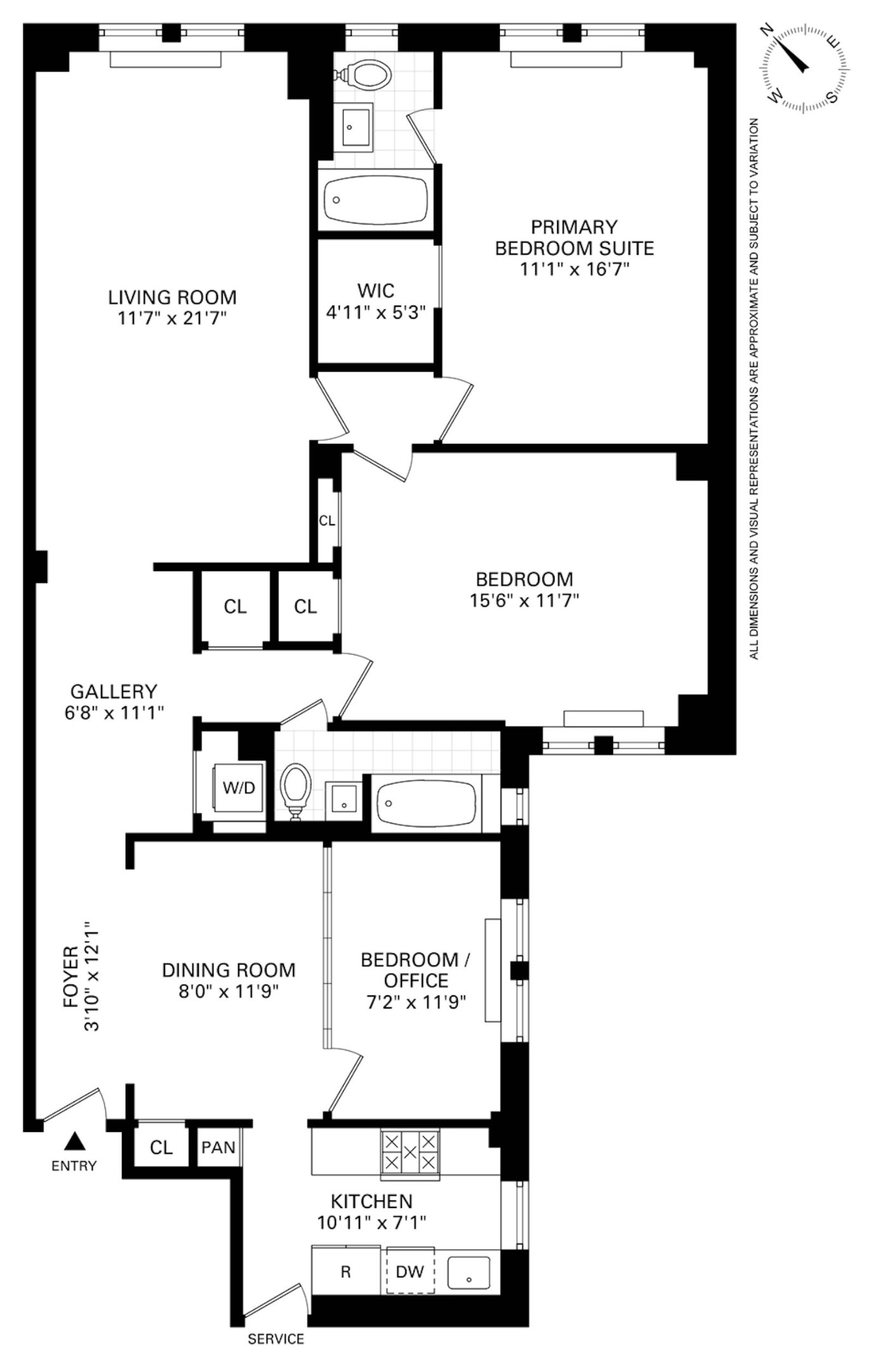 There is a home office which can also be used as a third bedroom/nursery or guest room, per your needs. Additional thoughtful upgrades and conveniences include an in-unit self-venting washer/dryer and overhead lighting in every room.